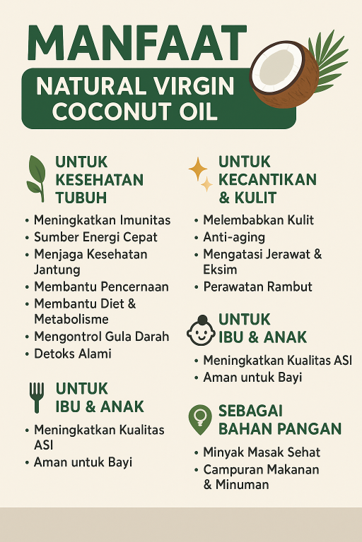 4. Bisa mengunakan teknologi rumahan untuk UMKM Produksi VCO bisa dilakukan dengan skala UMKM menggunakan teknologi sederhana tapi higienis, sehingga membuka lapangan kerja dan peluang usaha.